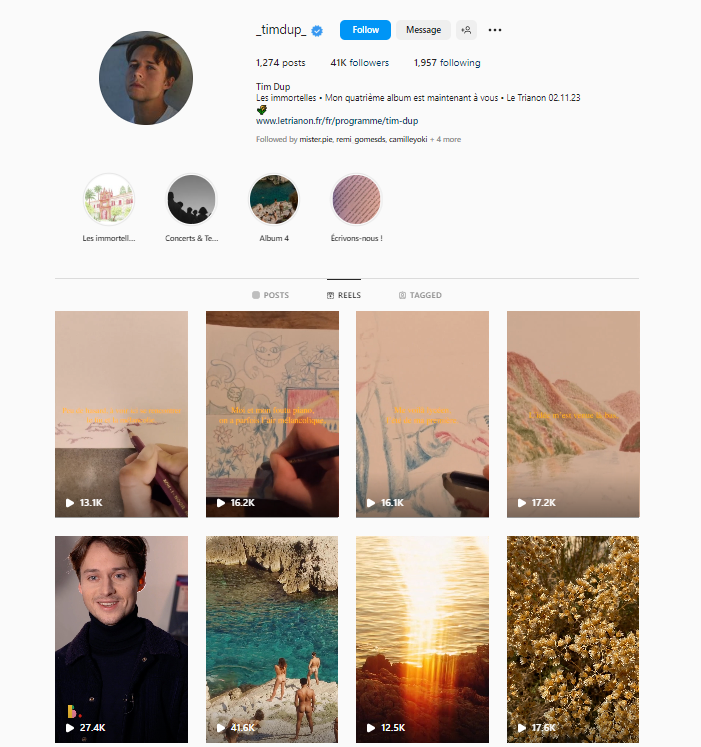 Tim Dup的官方網站與Instagram賬戶向我們展示了他的多元宇宙:快快去那裏觀看他的IG短片與音樂視頻,那是一部混合了各路聲音、多彩視覺、文字排列與旋律組合的音樂自傳。與同時代很多年輕藝術家一樣,Tim