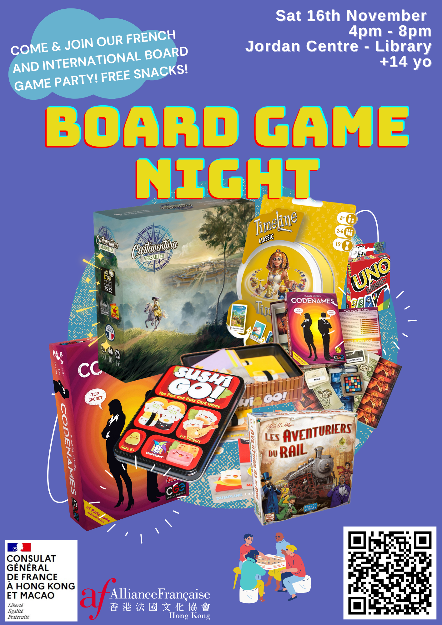 Come join us for an exciting board game night! Venez participer à notre soirée jeux de société !