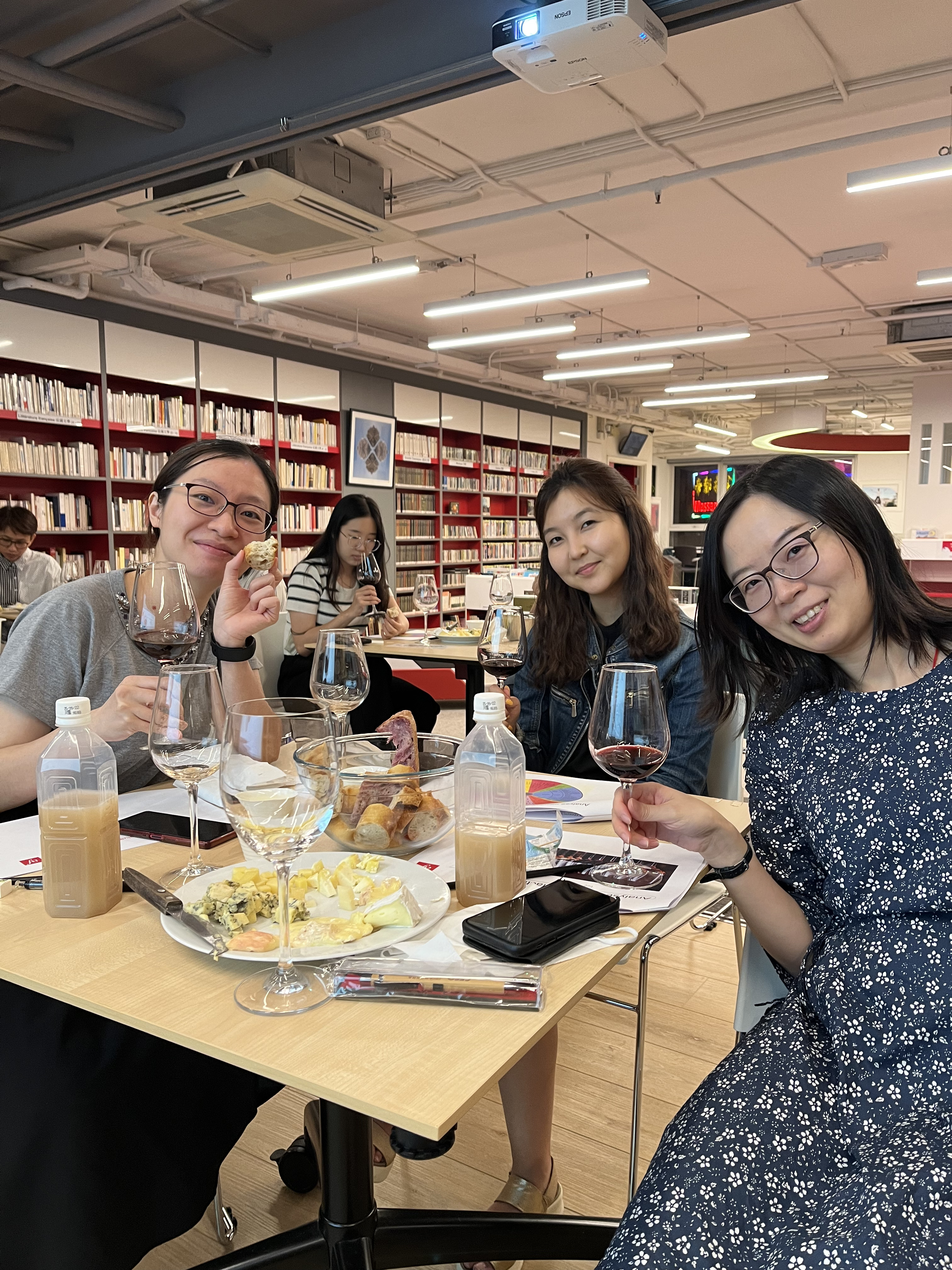 During the 2 hours workshop, we learned how to introduce ourselves and make  a small talk in French. Following by a cheese and wine tasting to put into practice.