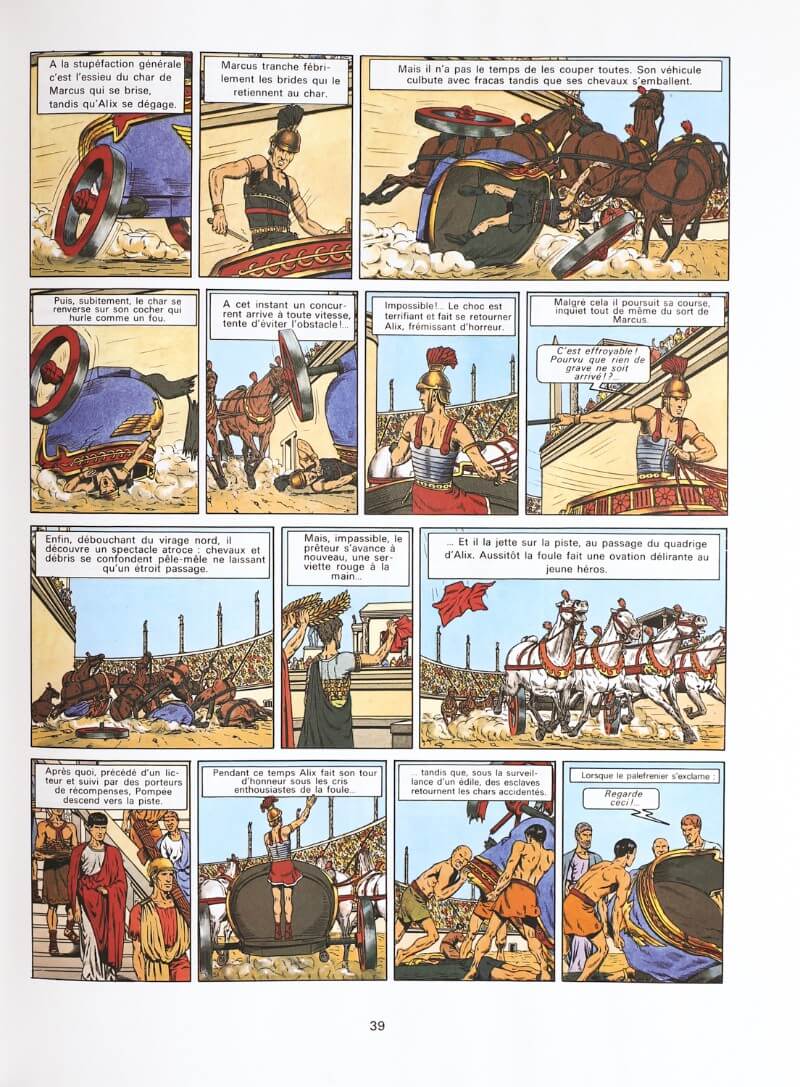 Alix, Alix is a young Gallic raised by Roman people. This situation will often lead him to be torned between his gallic roots and his roman citizenship. Friend with Caesar, he is renowned for his courage. Fearless and devoted to good causes, Alix was first published in Le Journal de Tintin. |