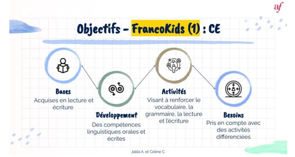 intérêts. Nous déclinons nos programmes en 2 parcours aux objectifs clairs: FrancoKids 1 et Francokids 2.