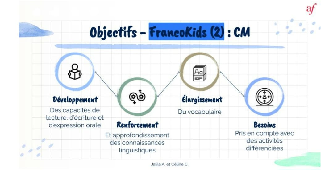 intérêts. Nous déclinons nos programmes en 2 parcours aux objectifs clairs: FrancoKids 1 et Francokids 2.