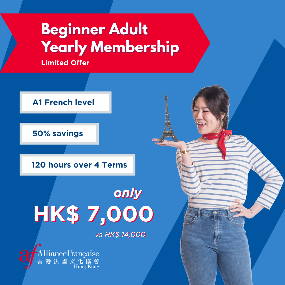 The initiative reflects AFHK’s 70+ years of dedication to French education and Tramplus’s commitment to community placemaking. This September, AFHK is introducing an exclusive Yearly Beginner Adults Membership offer designed for beginner learners. Students can now access all four sub-levels of the A1 French curriculum for only HK$7,000—less than half the regular price of HK$14,000. The initiative underscores AFHK’s dedication to making French language education more affordable and inclusive for the broader community. Registration is now open, register to enjoy up to 50% off with the Yearly Beginner Adults Membership!